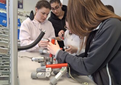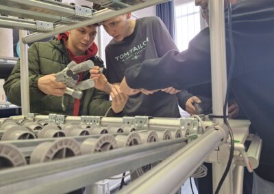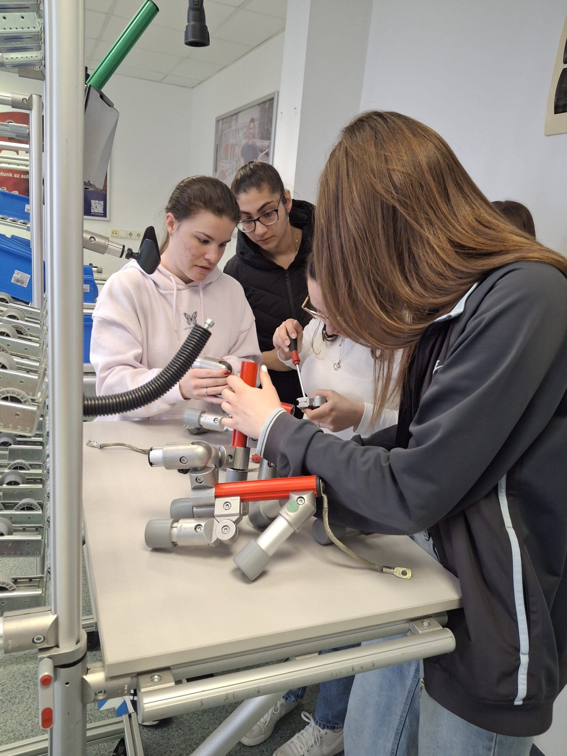 A Debreceni Egyetem Műszaki Karára látogatott a 11. osztályos fizika fakultációs csoport. A kari továbbtanulási lehetőségeket bemutató előadást követően érdekes feladatokat kaptunk, különböző laborokba látogattunk, ahol lehetőségünk volt működés közben megtekinteni és kipróbálni különböző eszközöket, robotkutyát szereltünk, tésztavárat építettünk. Az élménydús program még inkább megerősített bennünket abban, hogy a műszaki pályák irányában tervezzük a további tanulmányainkat.