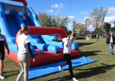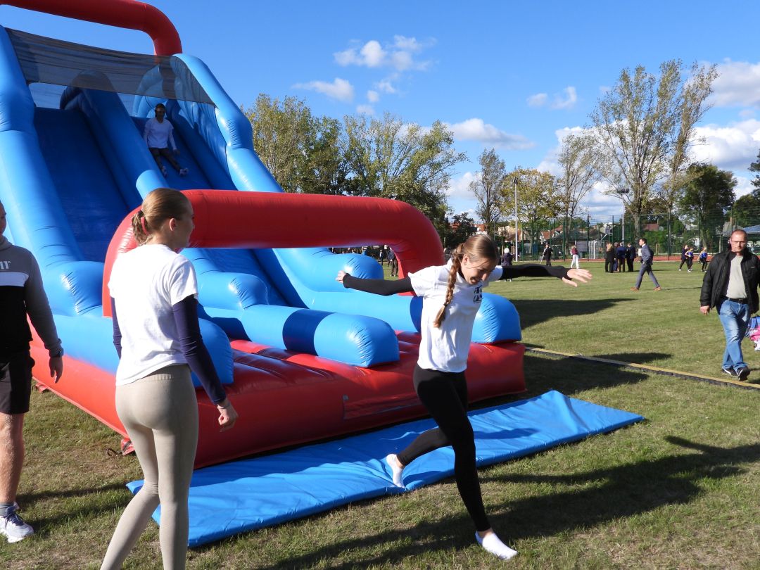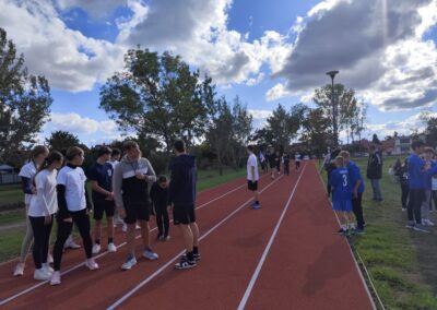 Az avatóbeszédek elhangzása után megtörtént a nemzeti színű szalag átvágása is. A délután további részében városunk apraja-nagyja változatos sportprogramokon vehetett részt. A sort a Gimnasztráda szakosztály bemutatója nyitotta, majd a közös, zenés bemelegítésbe lehetett bekapcsolódni. A legbátrabbak csatlakozhattak a 100 év – 100 km programhoz is, ahol ki-ki a saját képessége alapján teljesíthette a vállat távot a futókkal. A rendezvényen természetesen mi is ott voltunk. A szimbolikus, zászlós staféta teljesítése után a három helyi középiskola csapata az Exatrun-pályán mérte össze tudását.
