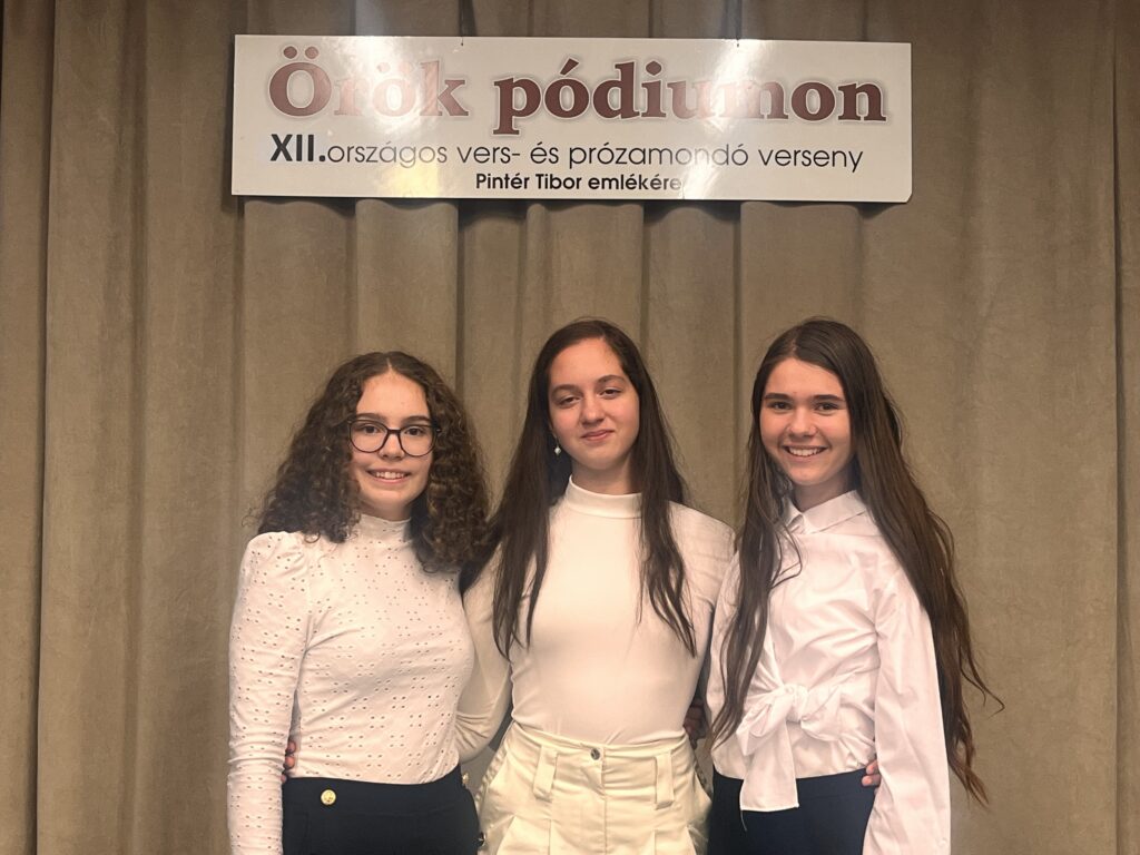 2025. 11. 08-án került megrendezésre Veszprémben a Pintér Tibor emlékére megrendezésre kerülő „Örök pódiumon” XII. Országos Vers-és Prózamondó verseny. A versenyen 5 kategóriában mérethették meg magukat kicsik és nagyok egyaránt. Iskolánkat Faludy Dorina Amanda (9.E), Marján Míra (10.A) és Szabó Lilla (9.E) osztályos tanulók képviselték az Ifjúsági kategóriában.
