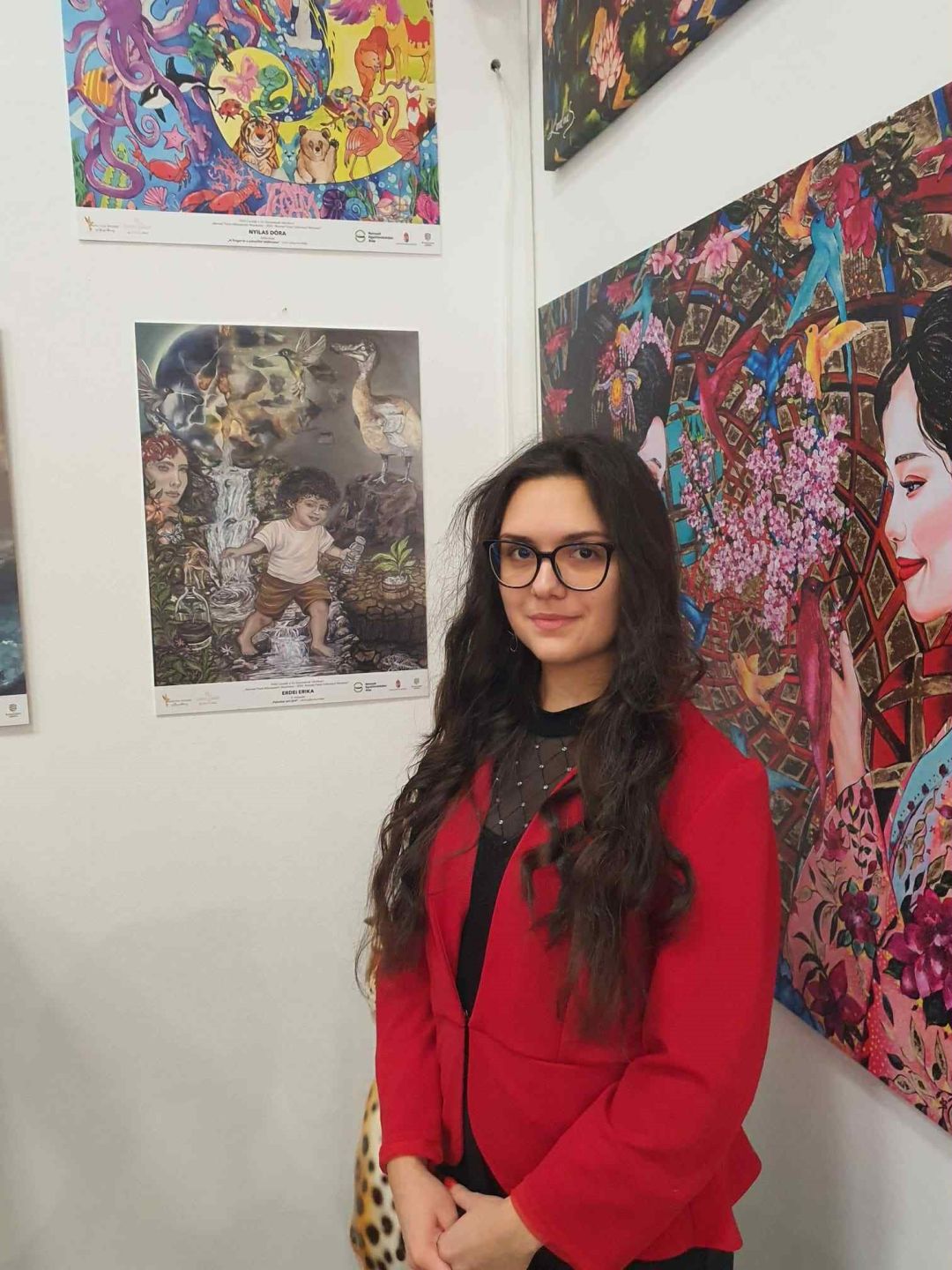 2025. december 12-én megrendezésre került a Nemzet Fiatal Művészeiért Alapítvány pályázatának díjátadó ünnepsége, amelyre én is meghívást kaptam. A tavalyi év során is megmérettettem magam a középső korosztályban, az idei évben azonban új kihívást jelentett számomra, hogy immár a 16-22 évesekből álló korosztályban kellett helytállnom, ahol már tapasztaltabb alkotókkal mérhettem össze a tudásomat. Óriási megtiszteltetés számomra, hogy több mint 400 pályázat közül a legkiemelkedőbb képek között a 2. helyet szereztem meg. Külön öröm volt számomra, hogy ebben az évben a díjkiosztó helyszínét a CarolynArt Galéria biztosította, ahol nemcsak Sávolt Karolina lenyűgöző alkotásait csodálhattam meg, hanem személyesen is találkozhattam vele és édesanyjával, Dr. Szabó Tündével. A pályamunkám a fenntarthatóság és a víz kapcsolatát dolgozza fel. A képemen azt szerettem volna megjeleníteni, hogy gyermekeink jövője rajtunk, szülőkön múlik, és azon, milyen döntéseket hozunk a mindennapokban. A kompozícióban szembeállítottam egymással a fenntartható, életet adó világot és a pusztulás felé sodródó környezetet. Ugyanakkor a kép reményt is hordoz: ha időben változtatunk szemléletünkön, még van esélyünk megmenteni a Földet, és olyan világot teremteni, melyben a következő generációk biztonságban élhetnek. Hálás vagyok Karolináéknak, amiért lehetőséget kaptam arra, hogy január végéig kiállítsák a pályamunkámat a galériában, valamint annak is, hogy a Bodó Galéria bemutatja a nyertes képeket májusban. A tanulás fontossága mellett a festészet számomra valódi kikapcsolódást jelent, ahol ki tudom a bennem rejlő érzelmeket bontakoztatni, és egy vászon felületén meg tudom ezeket jeleníteni. Minden egyes pályázaton igyekszem a legjobbat nyújtani, mivel mások szakmai visszajelzése számomra fontos, valamint megerősítenek abban, hogy folytassam a festést. Úgy gondolom a különböző pályázatok és kiállítások hatalmas motivációt jelentenek: segítenek új célokat kitűzni és folyamatosan fejlődni. Remélem, hogy a képeimmel másoknak is képes vagyok üzeneteket, érzéseket és gondolatokat átadni. Hálás vagyok mindenkinek, aki mellettem áll és támogatja az utamat!