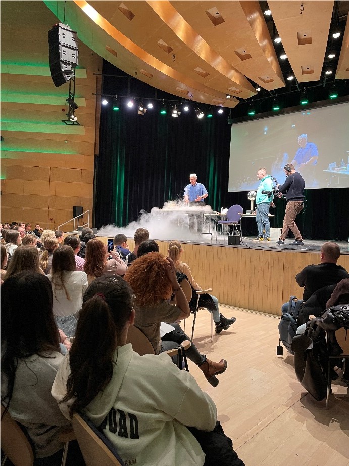A teremben lévő több, mint ezer diák feszült figyelemmel kísérte az előadást, melynek végén kérdéseket is feltehettek a látottakkal kapcsolatban.