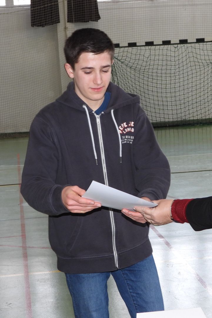 | 7.e | Györfi Botond | A stúdiós feladatokat önként vállalta, év eleje óta lekiismeretesen és pontosan végzi a munkáját. A szabad idejében a triatlon sportág elkötelezett művelője és a futással, úszással, kerékpározással kapcsolatos versenyek rendszeres indulója. A tanáraival szemben udvarias, az osztálytársaival jól megértik egymást. |