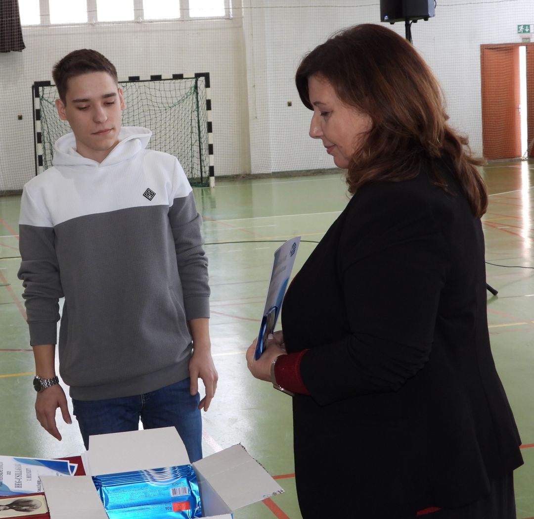 | 11.d | Kiss Kiara | Az utóbbi időben nem úgy sikerül minden dolga, ahogy szeretné, ezért ezt a karácsony alkalmából adható meglepetést azért neki szánnám, hogy ne adja fel, és higgyen magában, mert nagyon közel áll a célja eléréséhez, amiért meg is dolgozik. Ezen kívül pedig dicsérendő az önkritikája, humora, figyelmessége és a kedvessége. |