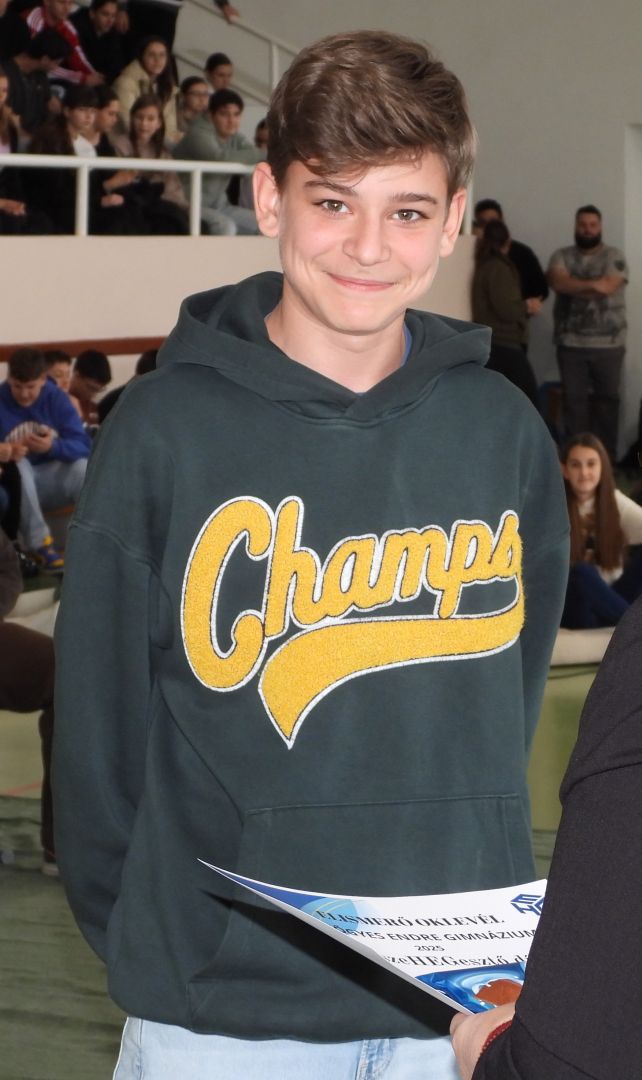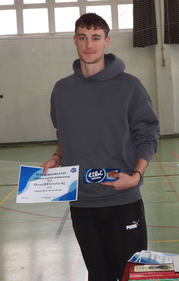 | 12.E | Sallai Bálint | Bálint 6 éve példát mutat magatartásával, kitartásával, küzdeni tudásával, nem csak társainak, hanem városi szinten is. A kézilabdában és a sportban való szerepvállalása kimagasló. E mellett részt vesz jótékonysági futásokon, rendezvényeken csak úgy, mint városi megemlékezéseken is. Személyisége és mindennapi hozzáállása példamutató. |