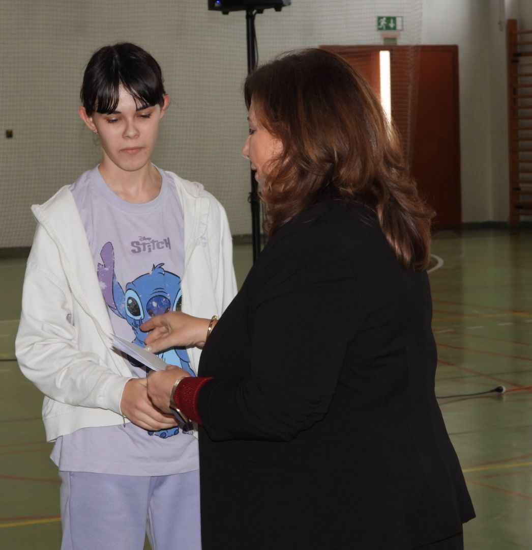 | 10.e | Oláh Jázmin | Az osztályközösséget érintő programokban, feladatokban mindig számíthatok rá. Annak ellenére, hogy Nádudvarról jár be, kiveszi a részét a közösségi életből. Mindig udvariasan viselkedik. Bár csendesnek tűnik, aktív tagja az osztálynak. |