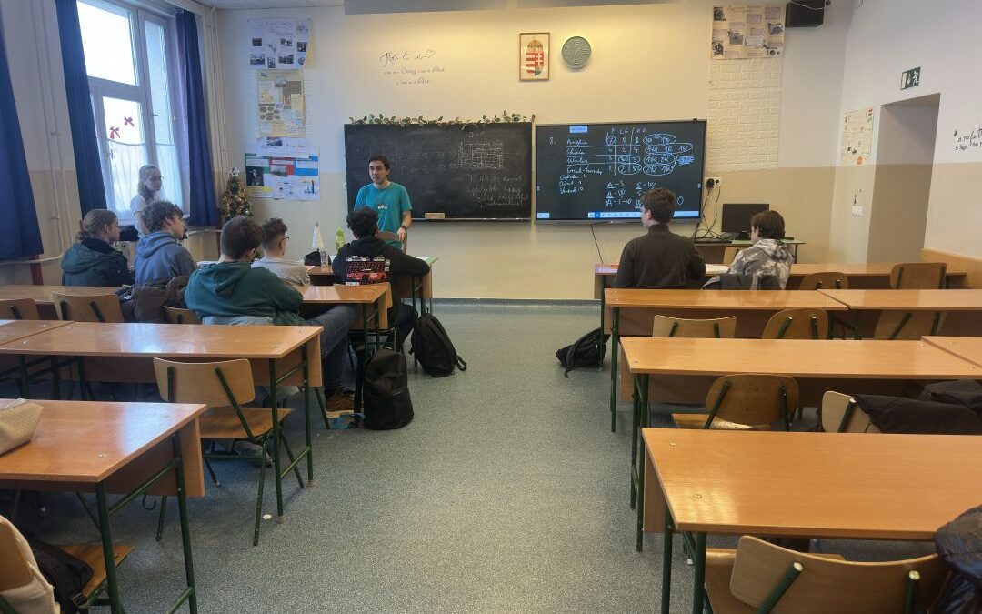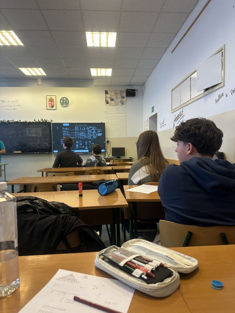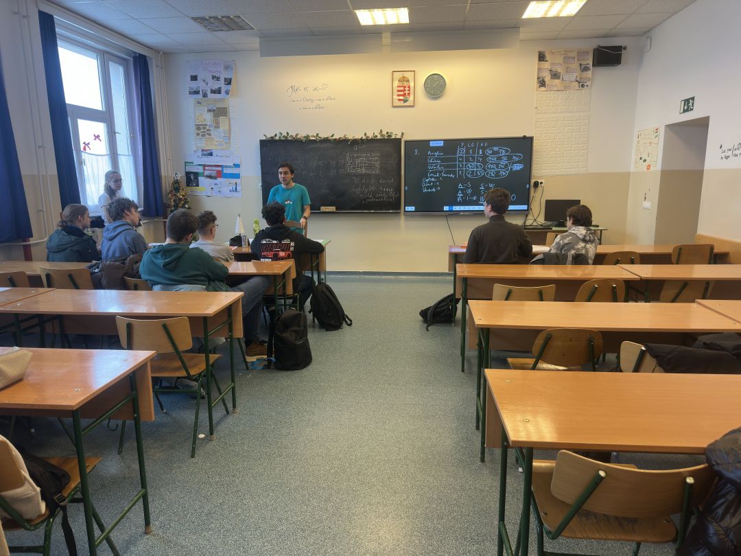 Osztályunk matekosainak és még néhány évfolyamtársunknak lehetősége volt részt venni egy ilyen programon. A foglalkozást két egyetemista vezette: Nagy Kartal, valamint segítője: Balaskó Noémi. A feladatokhoz nem kellett plusz matematika tudás, elég volt logikusan gondolkodni. Amikor elakadtunk, az oktatók segítettek rámutatni a feladatok megoldásának lehetséges módjaira. Különösen tetszett a csapatban való feladatmegoldás, és hogy a feladatokat az egész csoport együtt beszélte át a végén.