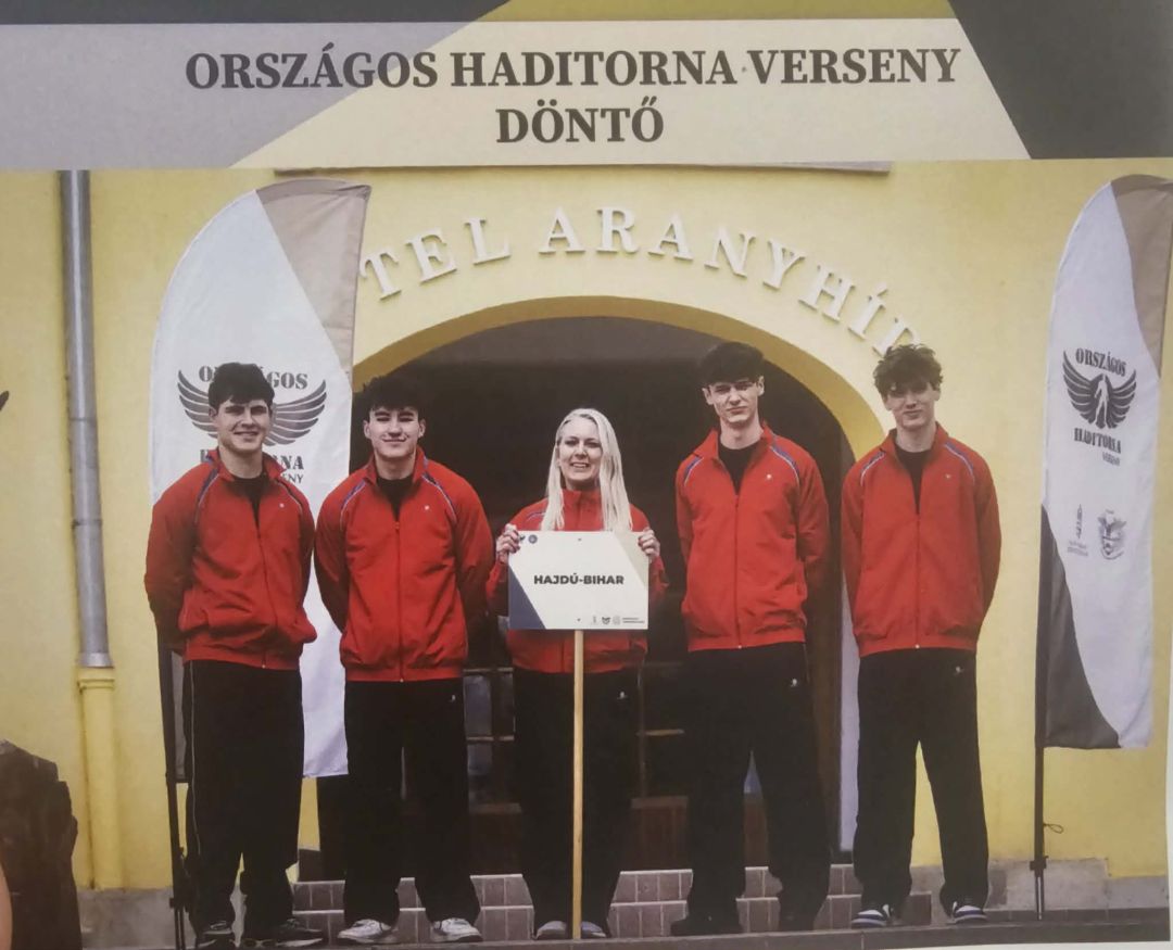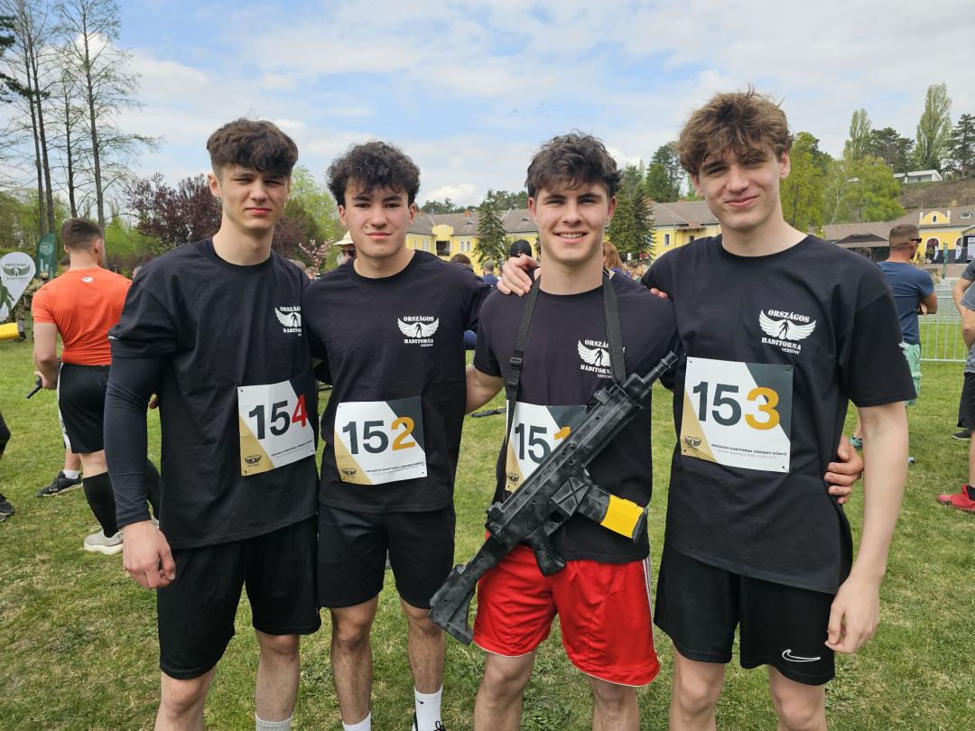 Balatonakarattyán került megrendezésre a 10. Országos Haditorna Verseny (OHV) országos döntője, valamint a párhuzamosan zajló 6. Nemzetközi Kadét Kupa. Iskolánk csapata Hajdú-Bihar vármegye bajnokaként vehetett részt a rangos megmérettetésen, ahol négy napon át bizonyíthatták felkészültségüket. A verseny során rendkívül összetett és kihívást jelentő feladatokkal kellett szembenézniük, többek között mátrix-labirintus tájékozódási futással, elsősegélynyújtással, taktikai mozgással egybekötött paintball lövészettel és lézerlövészetes váltófutással. Emellett akadálypálya, kislabdahajítással kombinált lövészet, fegyveres váltófutás, valamint tereptan, távbecslés és drónkezelés is szerepelt a feladatok között. A rendkívül erős, 20 csapatos mezőnyben tanulóink végig becsülettel, tudásuk legjavát nyújtva küzdöttek. Kitartásuknak és elszántságuknak köszönhetően az előkelő országos 9. helyezést szerezték meg.